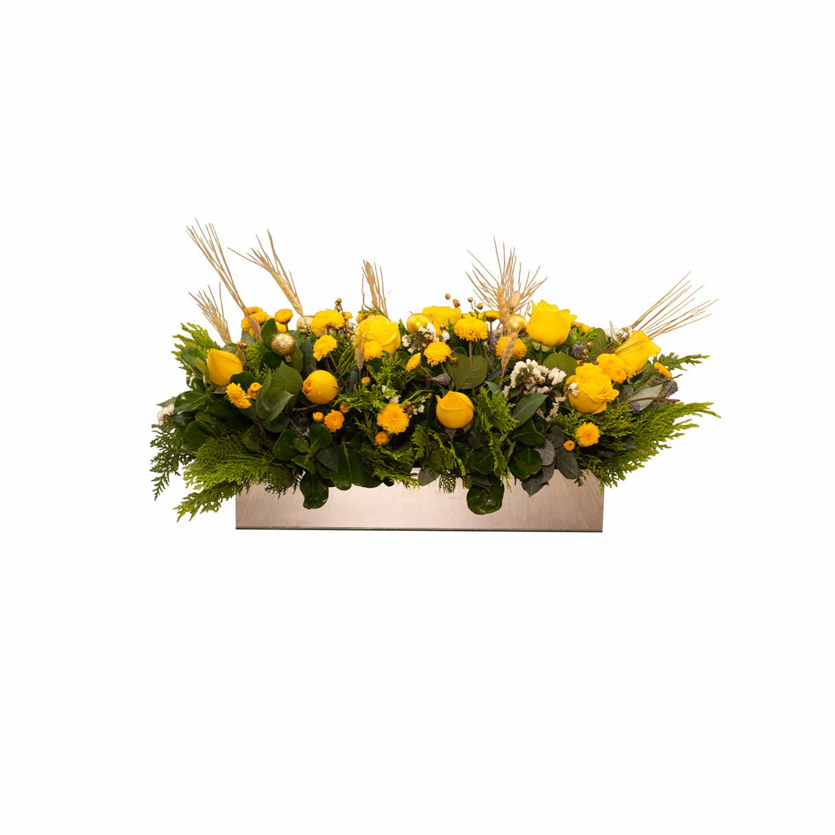 Mix de rosas y follajes con decoración navideña en base de vidrio espejo. Elige la  opción ideal para tu mesa: