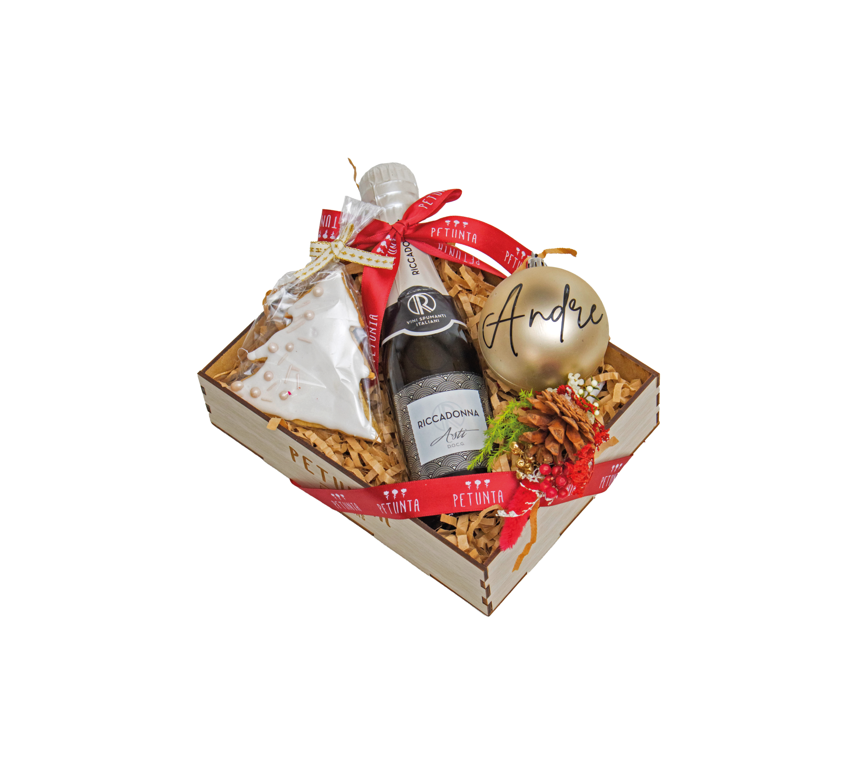 Mini Riccadonna 200 ml, galleta navideña, esfera personalizada y mini ramillete de flores